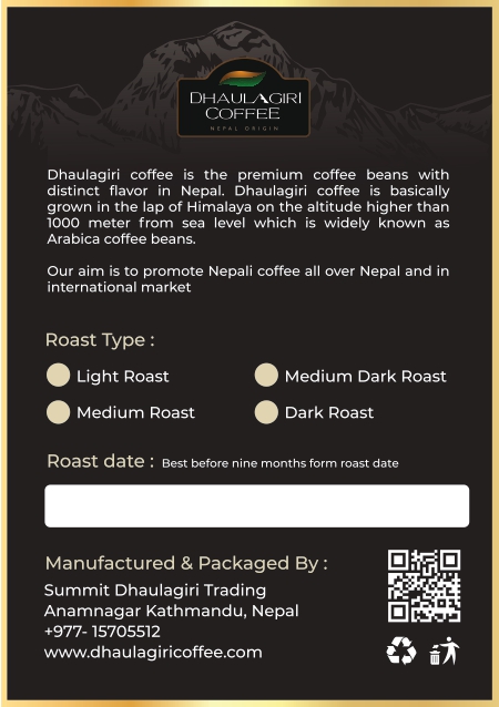 Dhaulagiri coffee is the premium coffee beans with distinct flavor in Nepal. Dhaulagiri coffee is basically grown in the lap of Himalaya on the altitude higher than 1000 meter from sea level which is widely known as Arabica coffee beans.